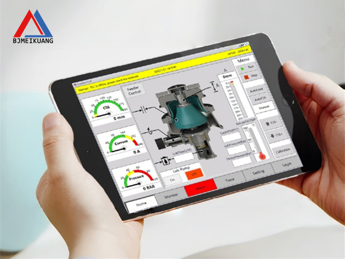 一套優秀的控制系統,是圓錐破碎機高效運行的"智慧大腦"。設備采用西門子PLC控制+臺灣研華工控觸摸屏的黃金組合,搭載北京美礦航騰自主研發的ACS3.0控制系統——這套擁有國家版權局計算機軟件著作權的核心技術,讓破碎過程實現全流程智能管控,從根本上提升生產效率。